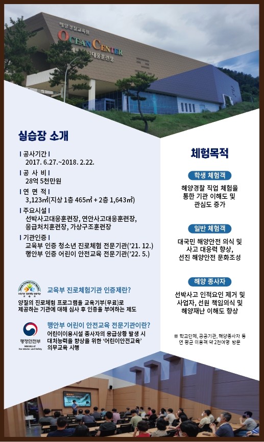 - 장 소 : 해양경찰교육원(전남 여수시 해양경찰로 122) 해양재난대응 실습장
